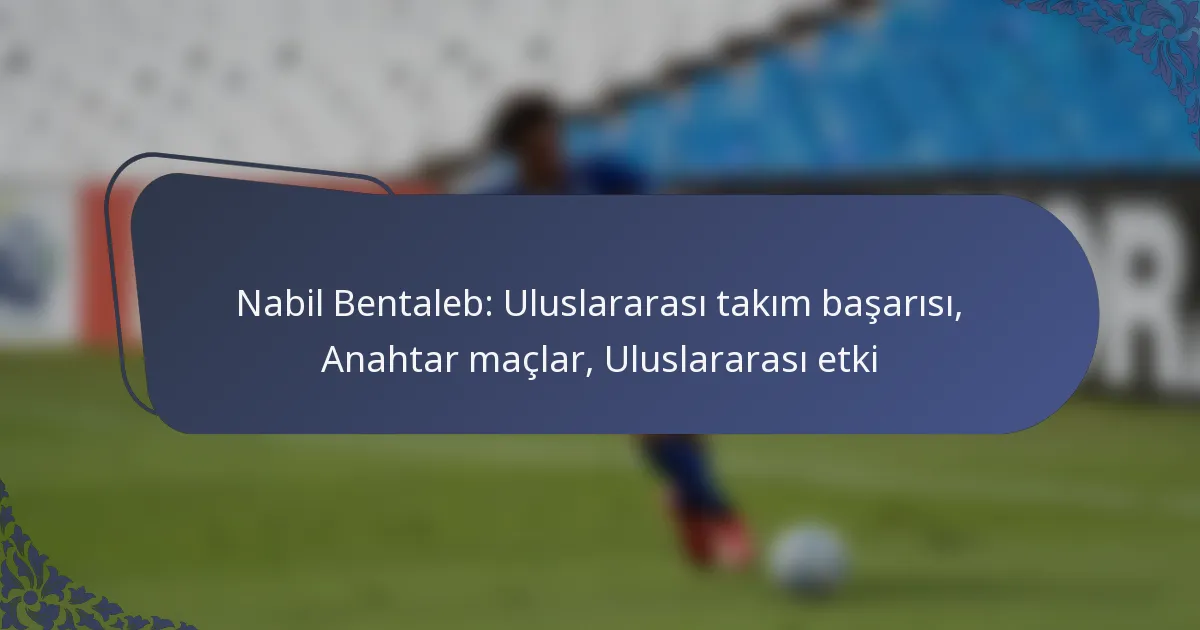 Nabil Bentaleb, uluslararası kariyerinde çeşitli zorluklarla karşılaşmış, bunlar arasında sakatlıklar, pozisyonlar için rekabet ve kültürel ile siyasi faktörlerin etkisi bulunmaktadır. Bu unsurlar, performansını ve milli takımdaki fırsatlarını şekillendirmiş, sahadaki genel katkılarını etkilemiştir.